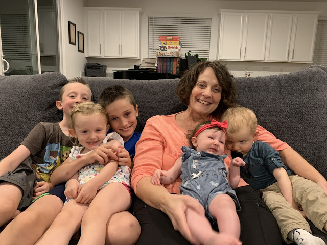 It started with my son, his wife, and his 2-year-old little boy coming for a visit in October, since holidays are way too messy a time to travel and everyone always ends up sick. They live the farthest, and we don’t get to see them as often as we’d like, but we do our best. Three of my children live here, and since two others live less than six hours away, they decided to come, as well. My oldest daughter, and her family of 6, who live the farthest, hadn’t met their new nephew/cousin yet, so they wanted to come and join the fun, too. The last time we had all been together was at my daughter’s wedding in October of 2017. There were two grands and two on the way, at that time. Now there are five!